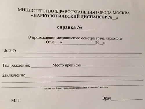 Перед посещением медучрежнений стоит дополнительно уточнять график их работы, который может меняться. В наркодиспансере потребуется сдать соответствующие анализы, результаты которых должны подтвердить, что вы не употребляете запрещенных веществ.